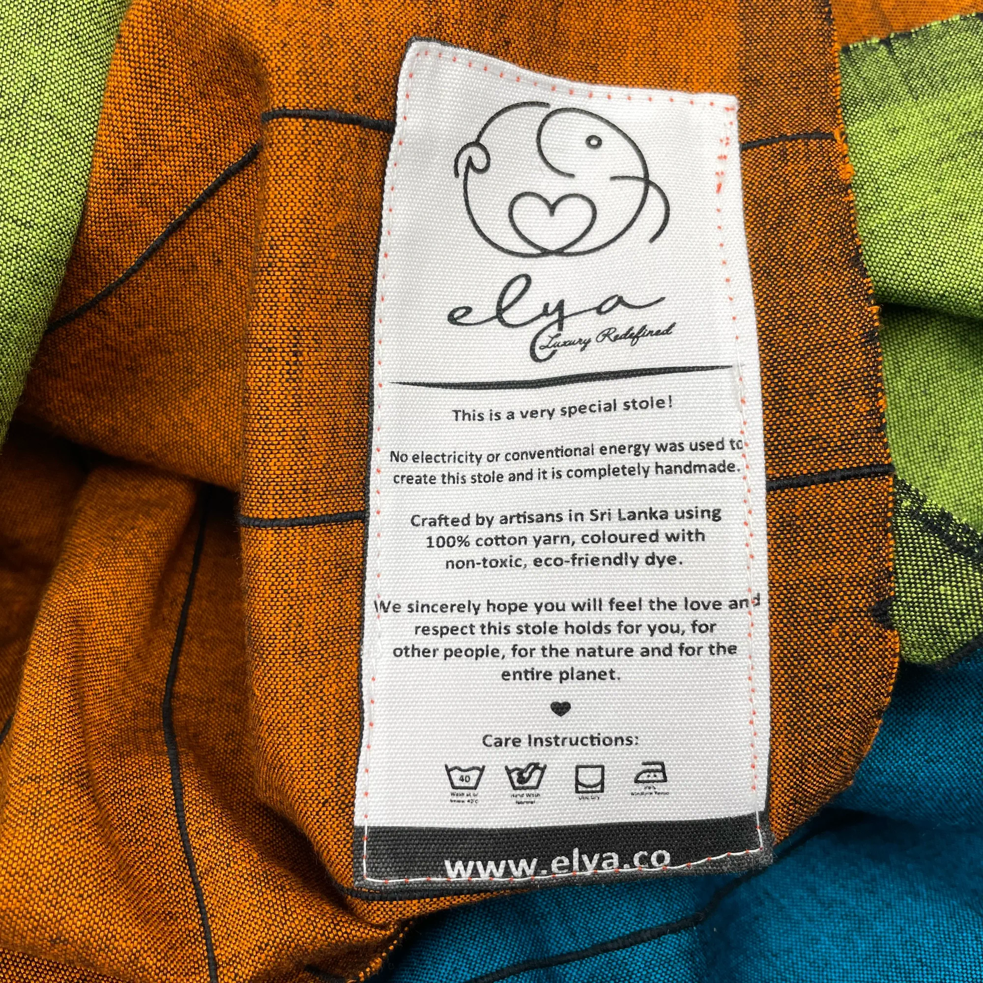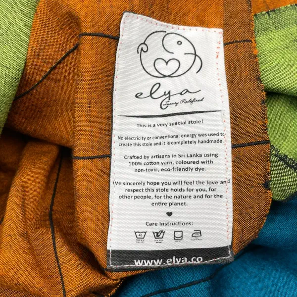 stole was handwoven by an artisan, no electricity or conventional energy was used in the