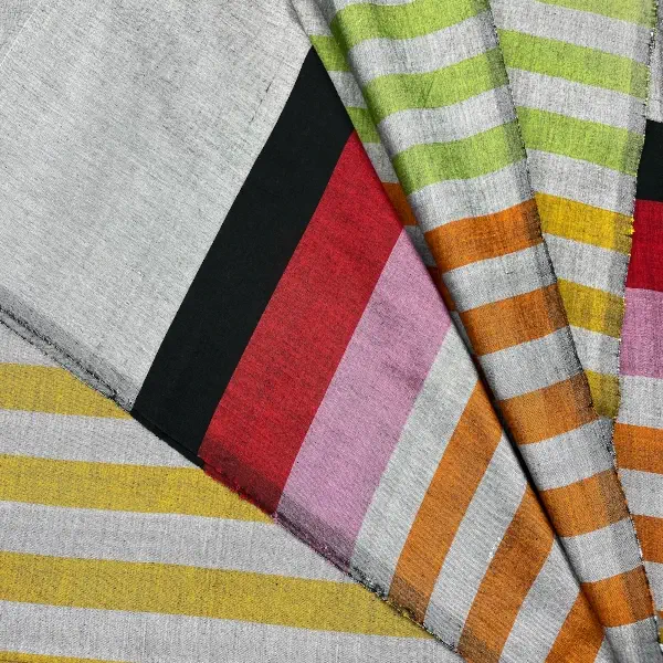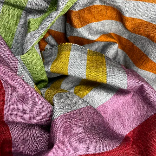 A beautiful shot shade wide stripes of Black, Mustard Yellow, Silver Grey, Lavender pink, Red,